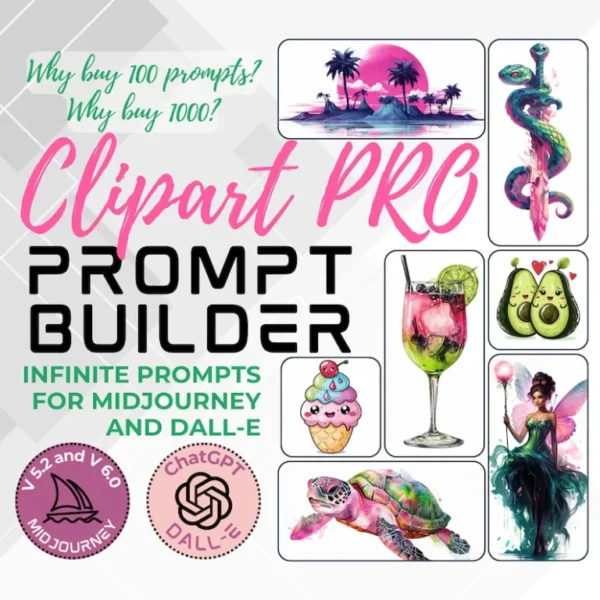 Clipart prompt builder PRO Midjourney prompt DALL-E 3 Clipart cute kawaii prompt Midjourney v6 ChatGPT prompt for Dalle 3 prompt clipart